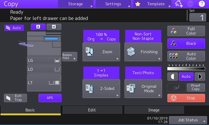 När du loggat in på skrivaren får du nu en förenklad vy av alla funktioner.